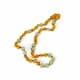 The MMH14/2 gemstone necklace featuring amber is designed for babies or children, offering both aesthetic appeal and potential soothing benefits. Amber is often favored for its natural properties, believed to help with teething discomfort. When choosing a necklace for a child, ensure it is made with safety in mind, using knotted beads to prevent choking hazards and promoting supervised wear to ensure safety. Always consult with a pediatrician before introducing any type of jewelry to young children.
