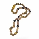 A 34 cm amber necklace designed for kids, featuring hazelwood and gemstones, offers both aesthetic appeal and potential wellness benefits. Commonly used by parents seeking natural remedies for teething discomfort, these necklaces combine the soothing properties of amber and hazelwood while incorporating colorful gemstones for added charm. Always ensure that any children's jewelry is properly supervised to avoid any choking hazards.